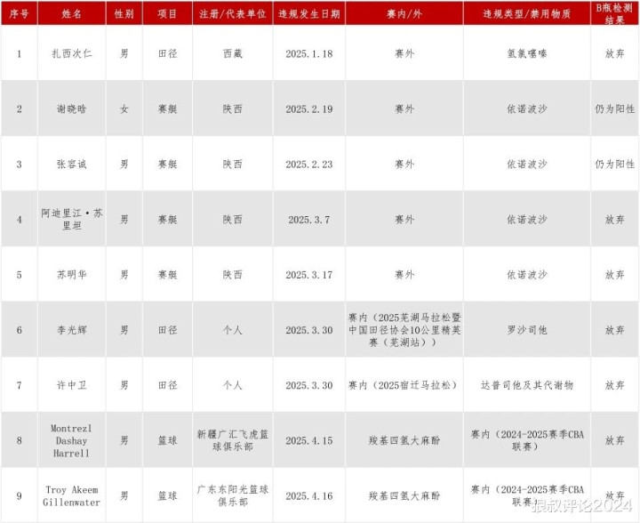 只是根据中国反兴奋剂中心公布的违规情况中,广东外援吉伦沃特、新疆外援哈雷尔都存在违规行为。